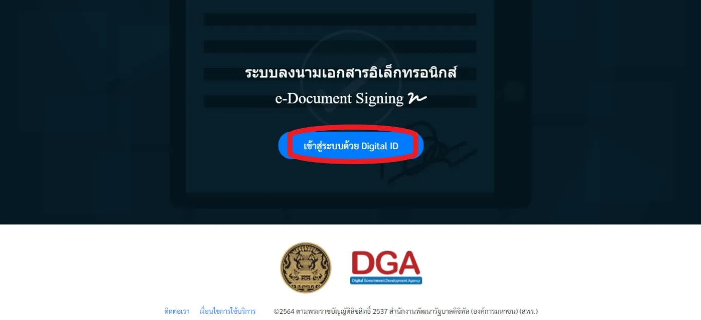 จากนั้นให้ทำการเข้าใช้งานระบบด้วย Digital ID ที่ https://sign.egov.go.th เพื่อใช้งานระบบลงนามเอกสารอิเล็กทรอนิกส์