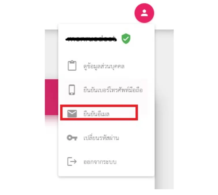 หน้าจอจะแสดงข้อมูลส่วนบุคคล ให้ คลิกที่ไอคอน มุมขวา จะพบเมนู “ยืนยันอีเมล” และ “ยืนยันเบอร์โทรศัพท์มือถือ”