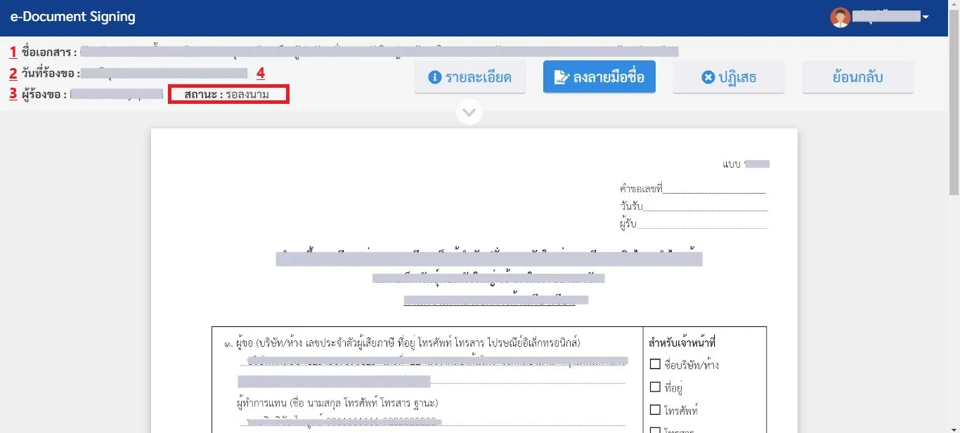 - ผู้ที่ร้องขอ(ผู้ส่งเอกสารให้ลงนาม)