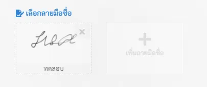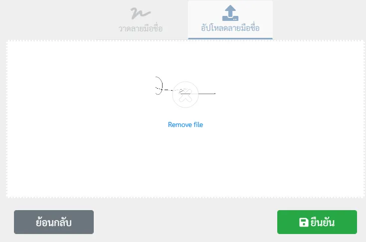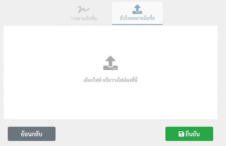 คลิก “เลือกไฟล์ หรือวางไฟล์ลงที่นี่” เพื่อเลือกไฟล์ลายมือชื่อที่เก็บไว้ในอุปกรณ์ของเจ้าของลายมือชื่อ
