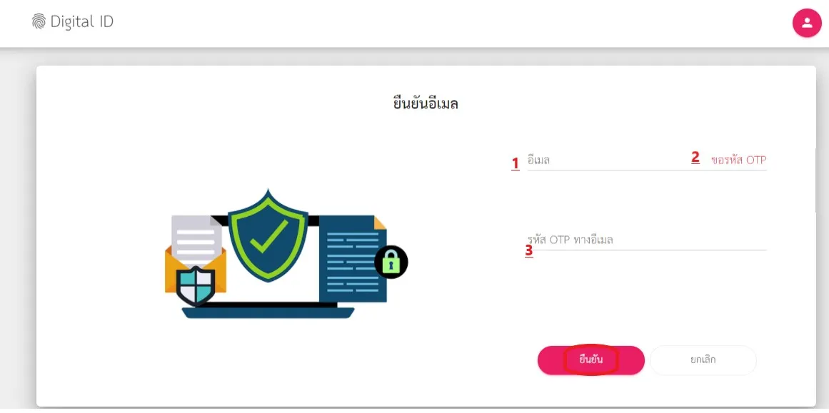 3.1 ทำการยืนยันอีเมล :โดยคลิก “ยืนยันอีเมล” และกรอกข้อมูลตามขั้นตอนดังนี้