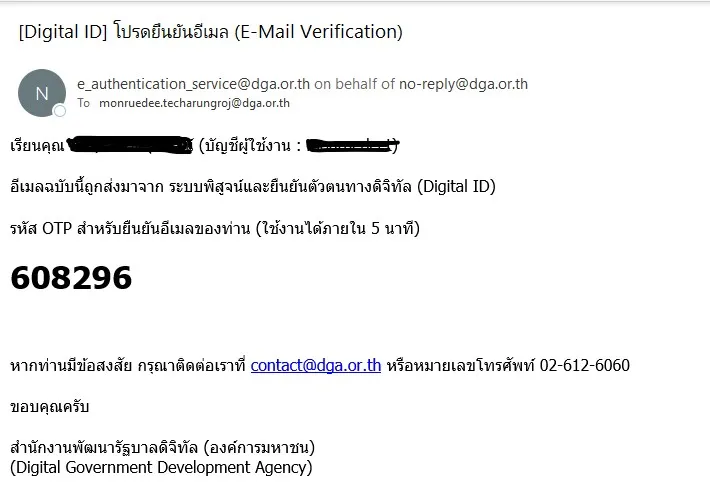 *ตัวอย่างอีเมลที่แจ้ง OTP